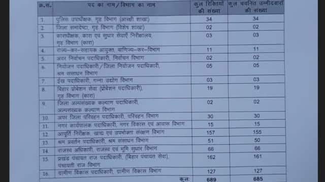 पटना: बिहार लोक सेवा आयोग संयुक्त परीक्षा का फाइनल रिजल्ट घोषित कर दिया है। इस परीक्षा में 685 अभ्यर्थी सफल घोषित किए गए हैं। कुल 689 पदों के लिए परीक्षा ली गई थी। अभ्यर्थी बिहार लोक सेवा आयोग की वेबसाइट www.bpsc.nic.in पर जाकर अपना रिजल्ट देख सकते हैं। परीक्षा में वैशाली जिले के सुधीर कुमार ने टॉप किया है। अरवल के अमर्त्य कुमार आदर्श दूसरे स्थान पर रहे, जबकि मुजफ्फरपुर के आयुष कृष्णा तीसरे स्थान पर रहे।
