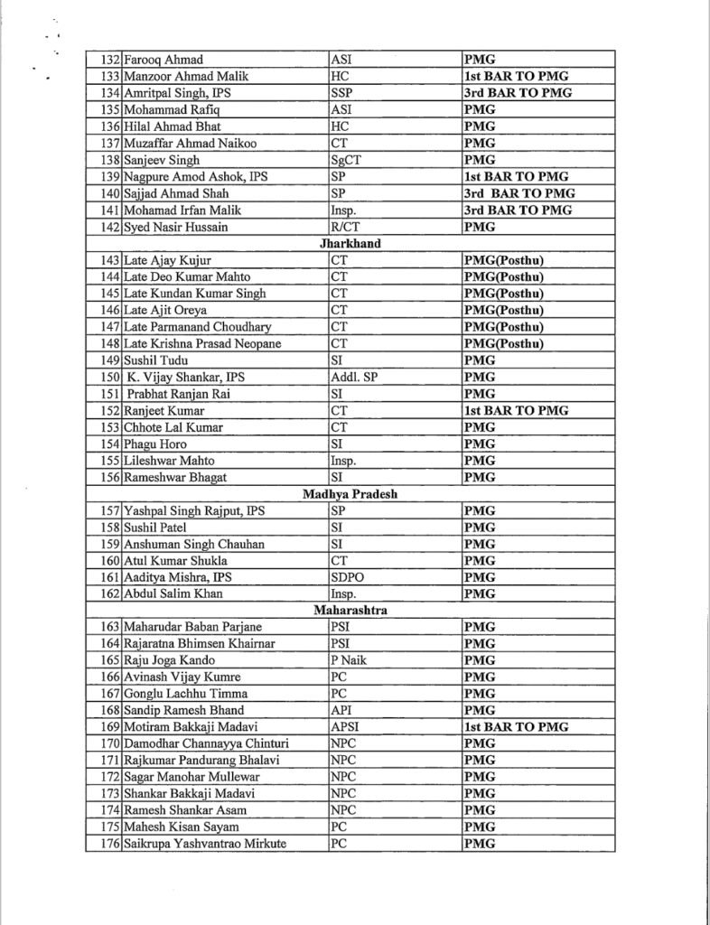 ब्रेकिंग : अदम्य साहस के लिए झारखंड के 6 जवानों को मरणोपरांत मिलेगा पुलिस गैलेंट्री अवार्ड….एडिश्नल एसपी विजय शंकर को भी पुलिस वीरता पदक…ये 26 होंगे सम्मानित