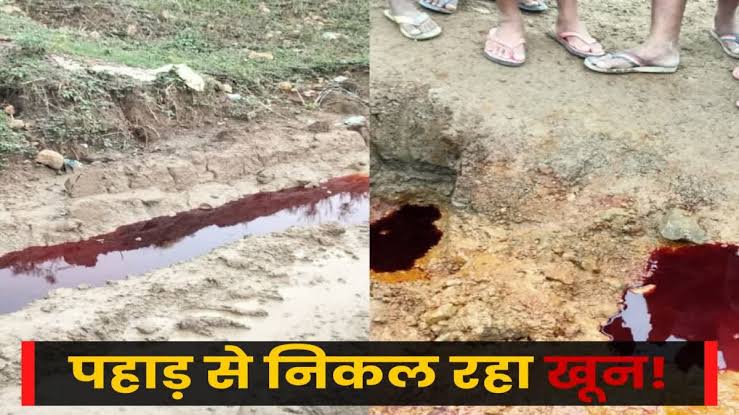 साहिबगंज : पहाड़ के सीने से निकल रहा ‘ खून जैसा लाल पानी’ ! लाल रंग देख पूजा पाठ में जुटे लोग