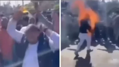 प्रदर्शन का ड्रामा बना डरावना हादसा…खुद पर पेट्रोल डाल रहे नेता को भीड़ में किसी ने लगा दी आग …कुछ ही सेकंड में मच गया कोहराम…