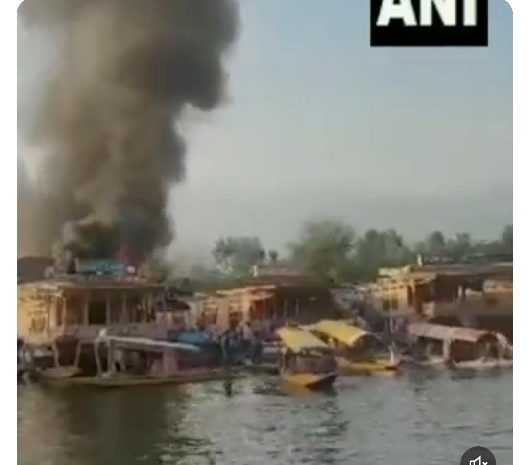 डल झील में धू-धू कर जला हाउस बोट, पुलिस कर रही जांच, देखें video
