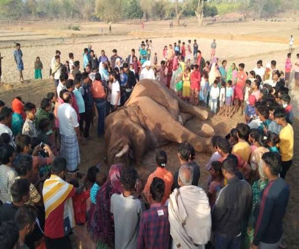 गांव में हाथी की हुई मौत, तो डर से पूजा पाठ करने लगे लोग….बिजली विभाग की लापरवाही से गई गजराज की जान