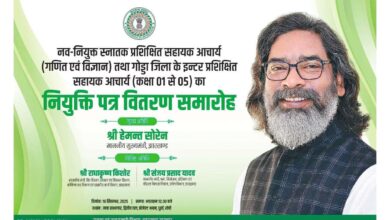 रांची: आज रांची में नव-नियुक्त स्नातक प्रशिक्षित सहायक आचार्य (गणित एवं विज्ञान) तथा गोड्डा जिला के इन्टर प्रशिक्षित सहायक आचार्य…