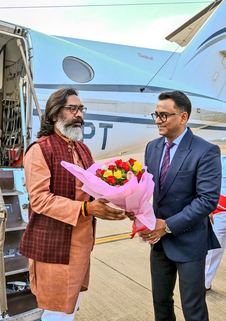 इससे पहले मुख्यमंत्री हेमन्त सोरेन के देवघर एयरपोर्ट पर आगमन पश्चात पुष्पगुच्छ देकर उनका स्वागत किया गया।