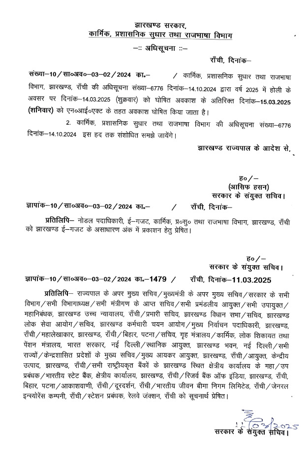 होली पर डबल खुशी: हेमंत सरकार के इस आदेश से राज्यकर्मियों की खुशियां हो गयी डबल, अब बेफिक्र होकर मनाईये होली …