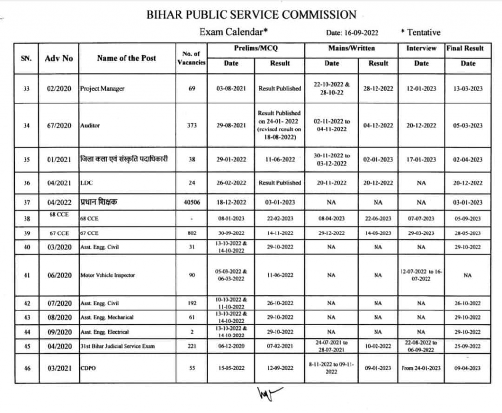 EXAM DATE : BPSC, एलडीसी, प्रधान शिक्षक और इंजीनियर भर्ती सहित दर्जनों परीक्षाओं की डेट जारी… देखिये कब-कब होगी कौन सी परीक्षा