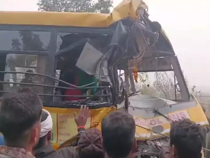 स्कूल बस और ट्रक में भीषण टक्कर, 2 की मौत, छुट्टी के बाद बच्चों व शिक्षकों को लेकर आ रही बस को ट्रक ने मारी टक्कर