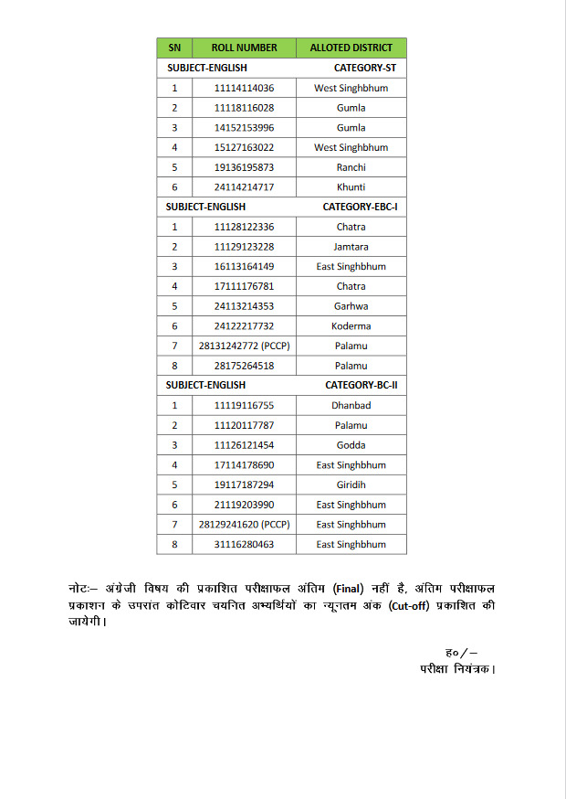 स्नातक शिक्षक प्रतियोगिता परीक्षा-2016: JSSC ने इन दो विषयों का रिजल्ट किया जारी, जिला व श्रेणी भी आवंटित , अब कट ऑफ मार्क्स होगा जारी