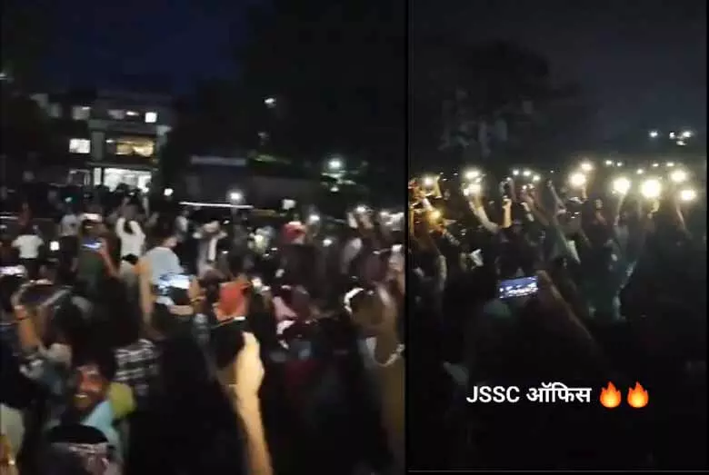 VIDEO : JSSC कार्यालय के बाह मोबाइल की रोशनी जलाकर डटे रहे अभ्यर्थी, सीजीएल परीक्षा रद्द कराने को लेकर अभ्यर्थियों का गुस्सा भड़का