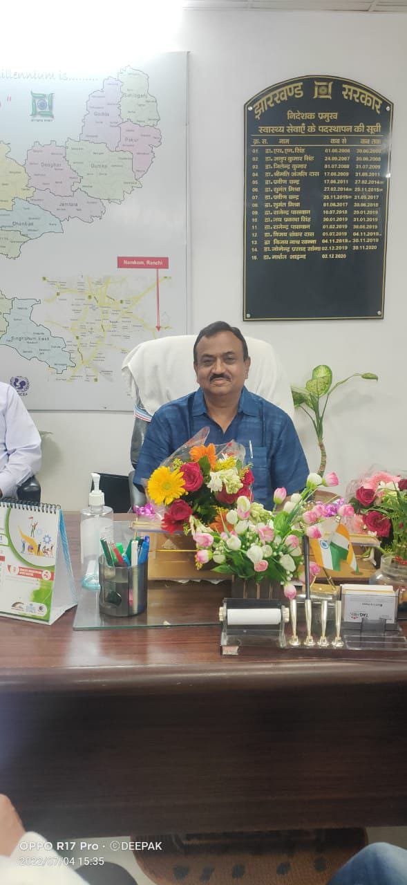 डॉ कृष्ण कुमार को स्वास्थ्य विभाग के कार्यकाल के लम्बा अनुभव रहा है।चतरा जैसे सुदूर जिले के साथ साथ हज़ारीबाग़ के नए मेडिकल कॉलेज तक का अनुभव उनके साथ है।वर्त्तमान में निदेशालय में पदस्थापित थे।अधिसूचना जारी कर उन्हें अपने कार्य के अतिरिक्त निदेशक प्रमुख का कार्य प्रभार सौंपा गया है।