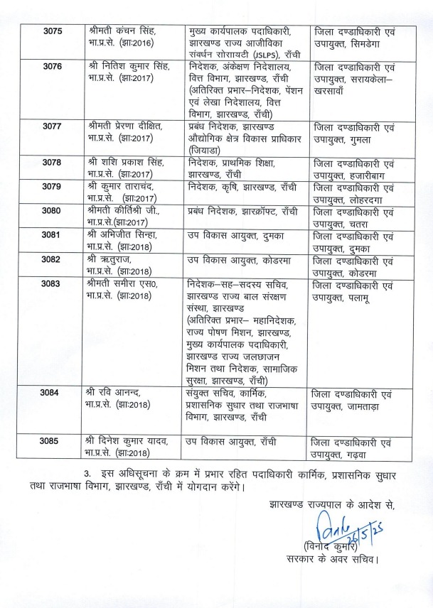 झारखंड IAS ब्रेकिंग: 20 जिलों के डीसी बदले, देवघर से लेकर धनबाद तक नये उपायुक्तों की हुई पोस्टिंग, देखिये पूरी लिस्ट, किसे कहां भेजा गया