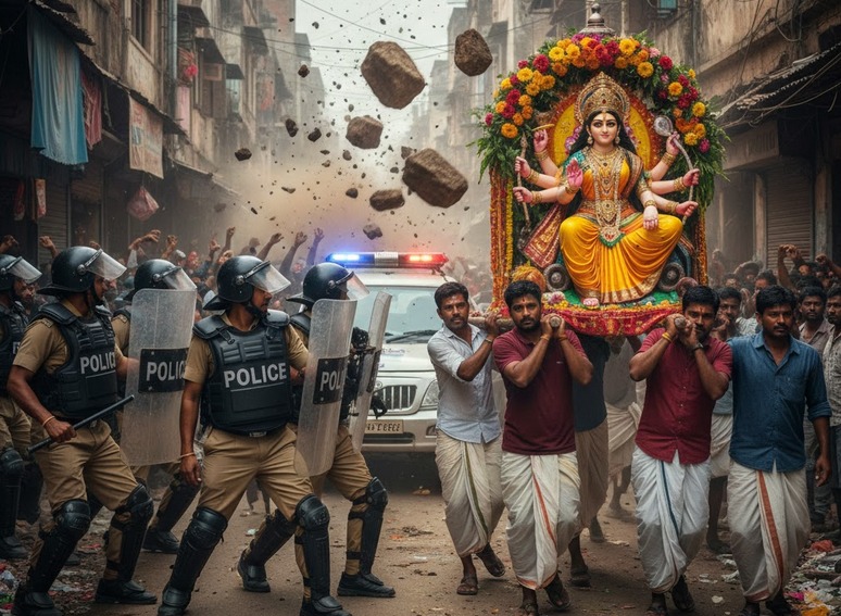 सरस्वती पूजा विसर्जन के दौरान माहौल बिगड़ गया, हिंसक झड़प के बाद दोनों ओर से जमकर पत्थरबाजी शुरू हो गई। अचानक हुई इस घटना से पूरे इलाके में अफरा-तफरी मच गई और लोग अपनी जान बचाने के लिए इधर-उधर भागते नजर आए। प्रत्यक्षदर्शियों के अनुसार, विसर्जन जुलूस के दौरान भड़काऊ गाने बजाए जाने को लेकर पहले कहासुनी हुई, जो धीरे-धीरे उग्र रूप लेती चली गई।