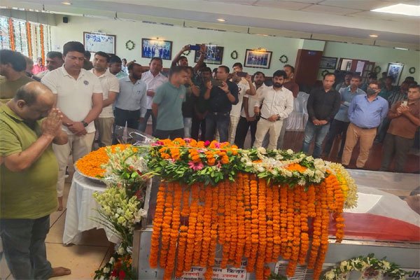 रांची: झारखंड क्रिकेट के सबसे बड़े शो-मैन कहे जाने वाले अमिताभ चौधरी को जेएससीए स्टेडियम में अभूतपूर्व श्रद्धांजलि दी गई। बुधवार को सुबह 10 बजे अमिताभ चौधरी के पार्थिव शरीर को अशोक नगर स्थित उनके आवास से धुर्वा स्थित जेएससीए स्टेडियम लाया गया। इसके बाद से श्रद्धांजलि देने के लिए दोपहर करीब 2:30 बजे तक लोग जेएससीए स्टेडियम में उमड़ते रहे।