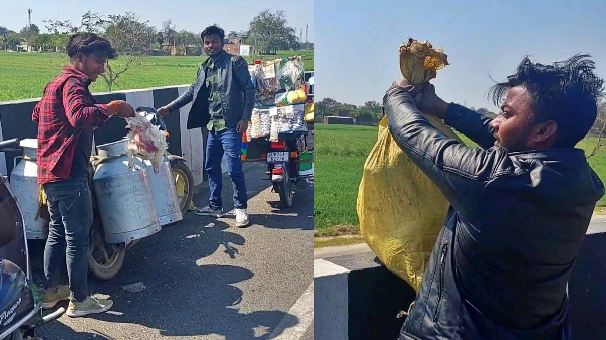 मुर्गे-मुर्गियों की लूट: मुर्गे से भरा ट्रक पलटा, तो मच गयी लूट, कोई दूध के कंटर, तो बोरे में भर-भरकर ले गया मुर्गा, मरा मुर्गा तक ले भागे