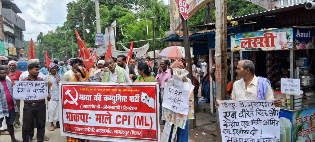 कहलगांव : भाकपा-माले कहलगांव द्वारा मणिपुर में महिलाओं को निर्वस्त्र कर घुमाए जाने के खिलाफ जिला कमिटी सदस्य सह कहलगांव प्रखंड सचिव महेश प्रसाद यादव एवं जिला कमिटी सदस्य रणधीर यादव के नेतृत्व में पार्क चौक से मार्च निकाल कर स्टेशन चौक पर प्रधानमंत्री नरेन्द्र मोदी का पुतला फूंका.