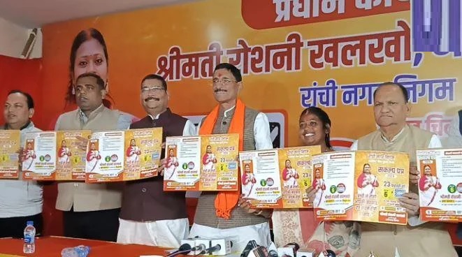 रांची निकाय चुनाव को लेकर राजधानी का सियासी माहौल गरमा गया है। भाजपा समर्थित मेयर प्रत्याशी रोशनी खलखो ने सहजानंद चौक स्थित अपने प्रधान कार्यालय में संकल्प पत्र जारी किया। इस मौके पर कई वरिष्ठ भाजपा नेता मौजूद रहे और प्रत्याशी के विजन को जनता के सामने रखा गया।