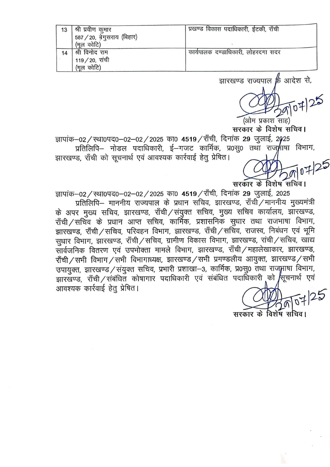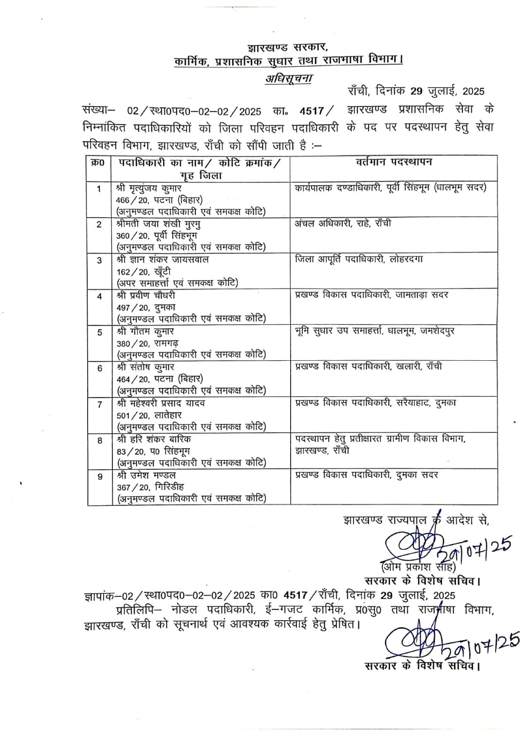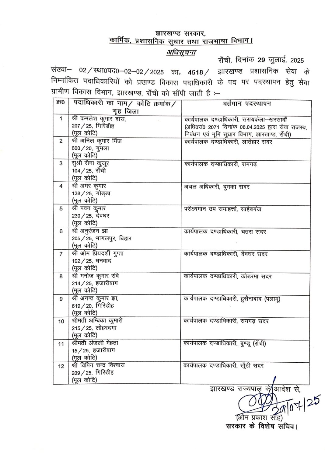 झारखंड ट्रांसफर ब्रेकिंग: BDO-CO सहित राज्य प्रशासनिक सेवा के कई अफसरों का तबादला, देखिए देर रात जारी हुए तबादला आदेश