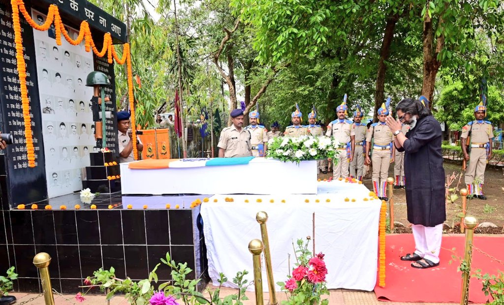 रांची: मुख्यमंत्री हेमंत सोरेन और राज्यपाल ने आईईडी विस्फोट में शहीद जवान सुनील कुमार मंडल के पार्थिव शरीर पर पुष्पचक्र अर्पित कर उन्हें दी।