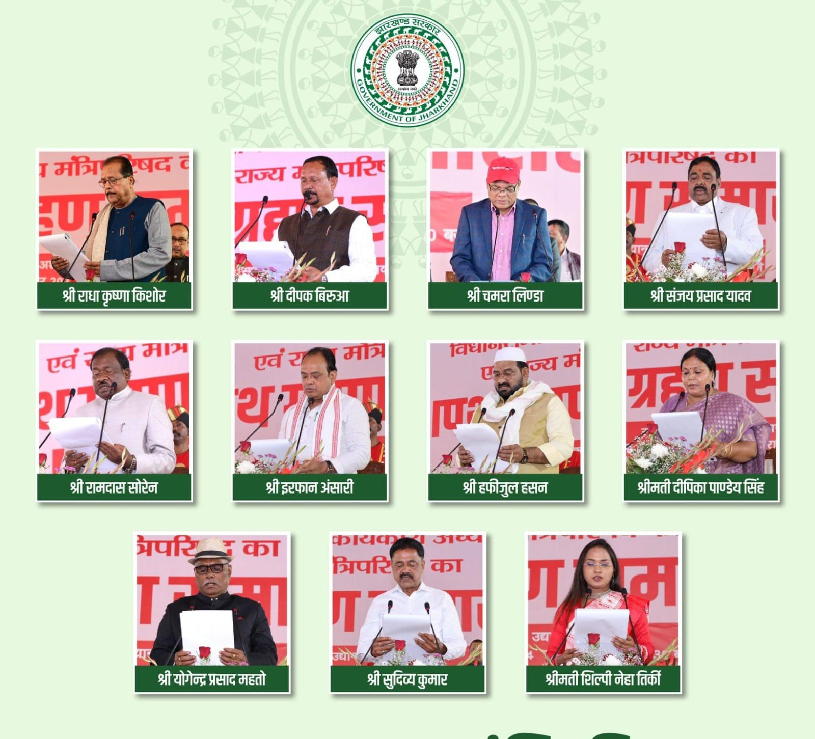 वहीं कैबिनेट के सबसे उम्रदराज चेहरे राधा कृष्ण किशोर हैं। 66 साल के राधा कृष्ण भी कांग्रेस के टिकट पर जीते हैं। खुद मुख्यमंत्री हेमंत सोरेन समेत चार मंत्रियों की उम्र 49 साल है। कैबिनेट के सभी मंत्री करोड़पति हैं। मंत्रियों की औसत संपत्ति 8.71 करोड़ रुपये है। राजद के टिकट पर जीते संजय प्रसाद यादव कैबिनेट के सबसे अमीर मंत्री हैं। संजय ने अपनी कुल संपत्ति 29.59 करोड़ रुपये बताई है।