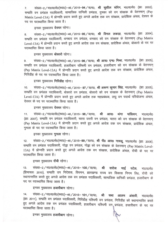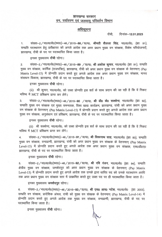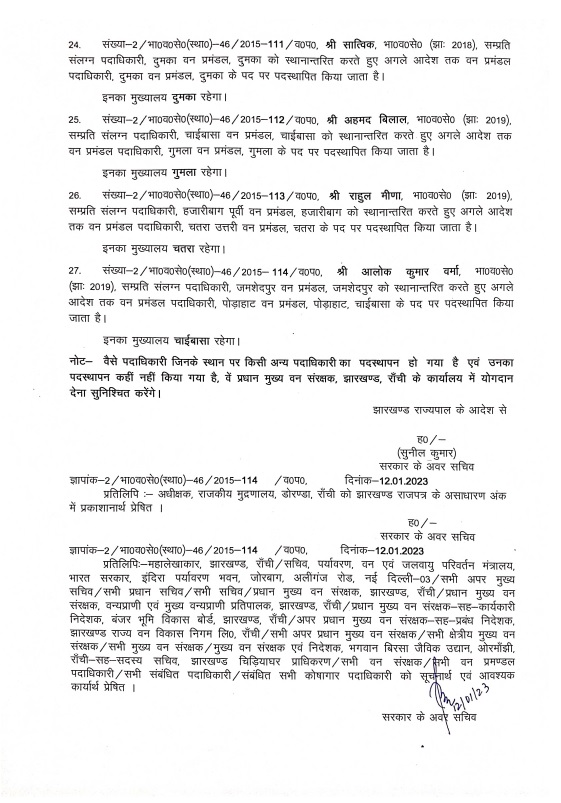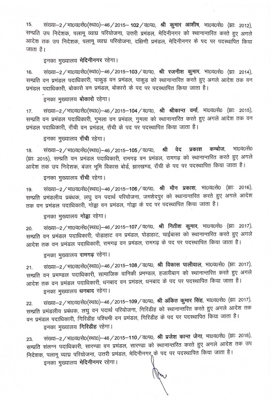रांची: राज्य सरकार बड़ी संख्या में भारतीय वन सेवा के अधिकारियों का तबादला किया है। आइये देखते हैं लिस्ट, किसे कहां मिली है पोस्टिंग..