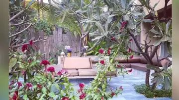 घर के गार्डन एरिया में भी कपल ने सीटिंग अरेंजमेंट की हुई है. यहां आपको कई तरह के पेड़-पौधे लगे हुए भी नजर आएंगे.