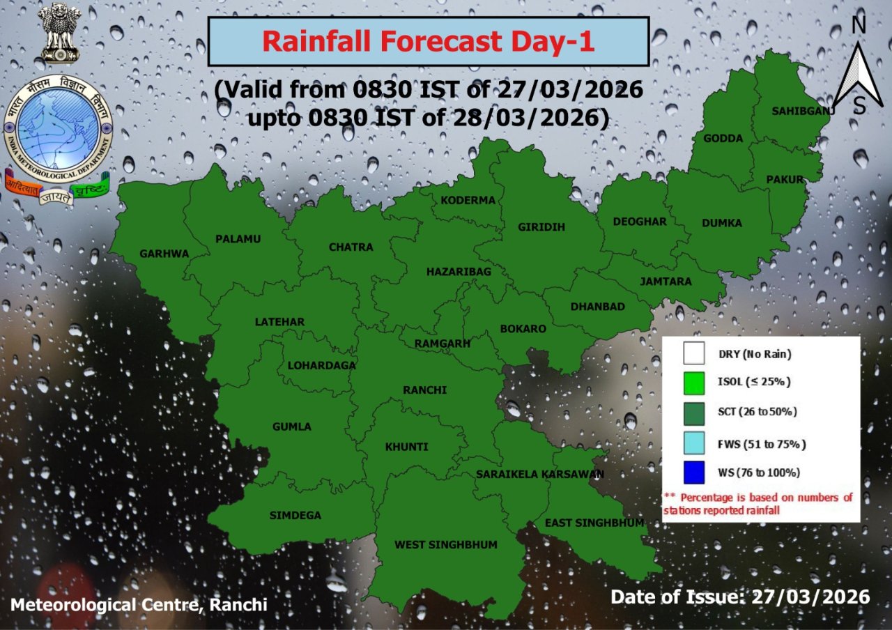 वहीं धनबाद में दिनभर धूप के बाद दोपहर में बादल छाए और शाम तक मौसम खराब हो गया, जिससे लोगों की आवाजाही प्रभावित हुई।